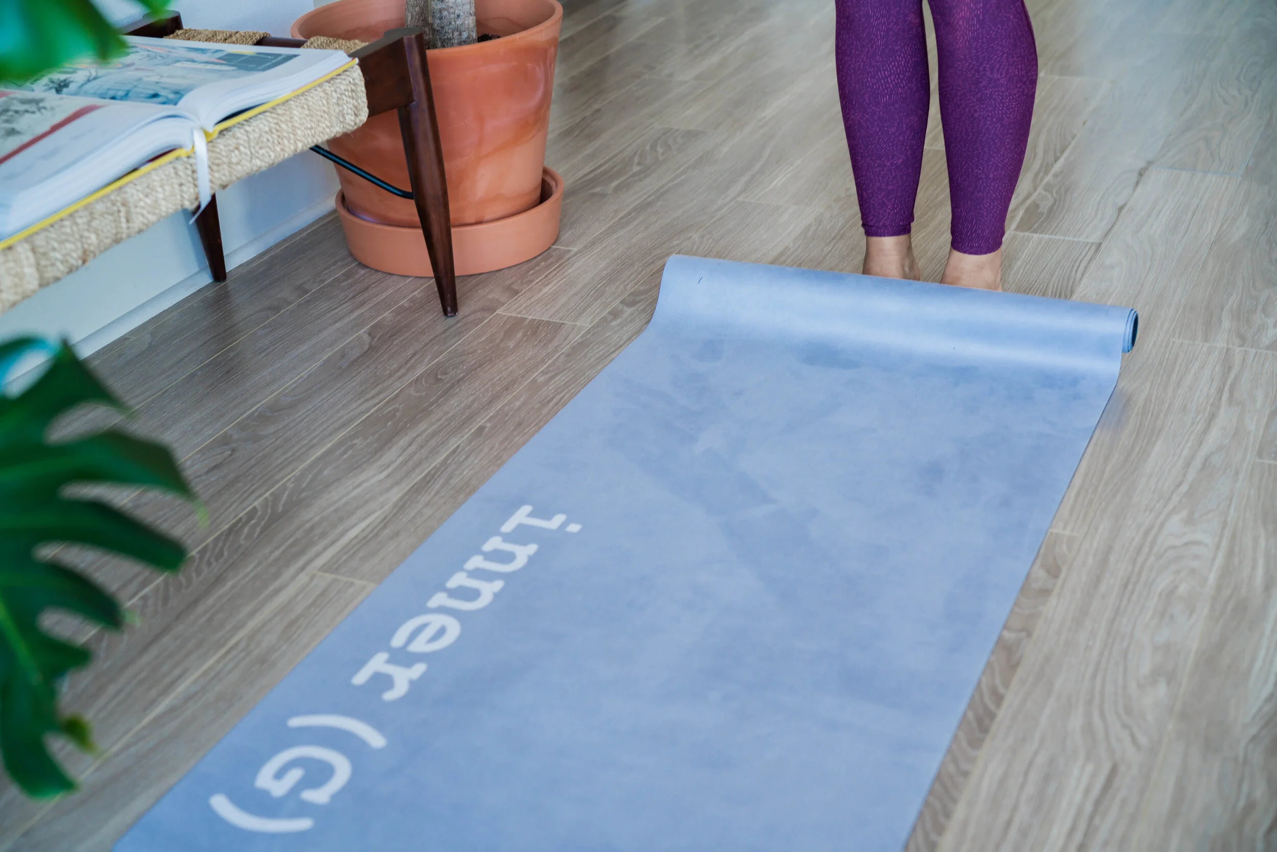 The Commuter Mat (travel mat): This mat of 1.5 mm of natural tree rubber is bonded to an ultra-absorbent microfiber towel layer. This super lightweight and ultra-foldable mat/towel were designed to be the ultimate on-the-go yogi companion. You can fold and pack this mat in your suit case.